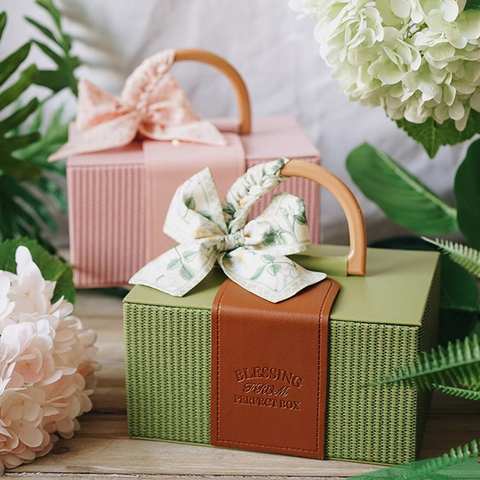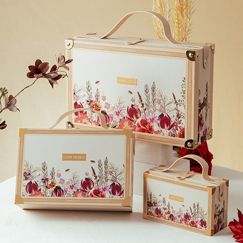 Logotipo personalizado Rectángulo de lujo Caja de regalo Lámina de oro Mango de cuero para dulces Regalos de aniversario de cumpleaños de chocolate Muestra gratis